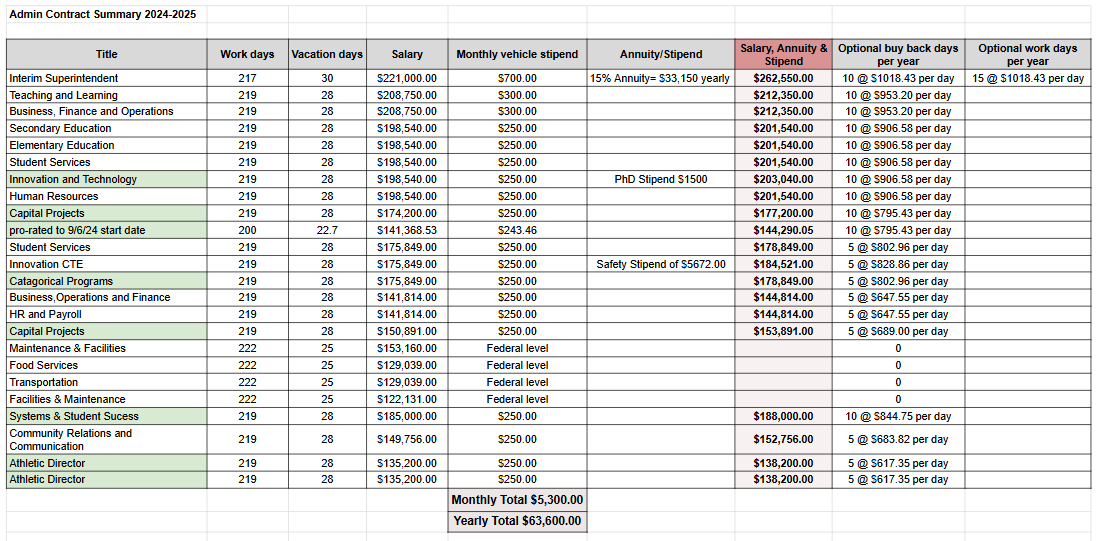 This chart is compiled from the 2024-2025 contracts of NKSD Administrators.